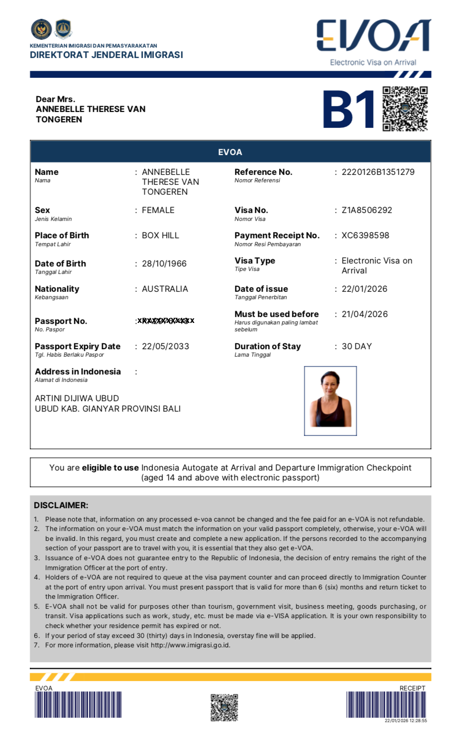 VISA #1. E-Visa for Indonesia - EVOA B1